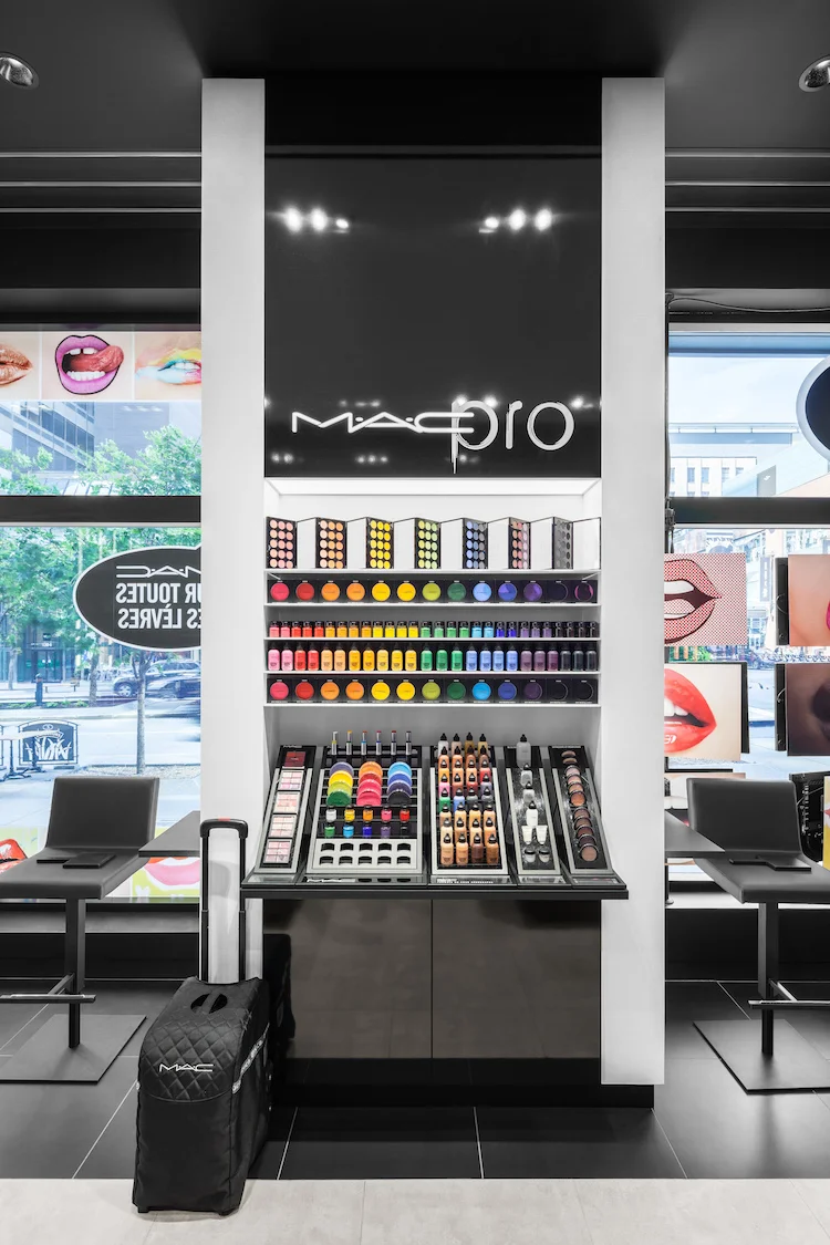 The new Montreal regional flagship 'Pro store' is located at 770 Sainte-Catherine West, alongside other popular retailers in the city's busiest retail corridor. The 1550 square foot store occupies a corner retail space in an 11-story confederation heritage building, offering the brand's full MAC Pro collection (which is popular with makeup professionals) as well as MAC collaborations and limited edition collections. The Montreal flagship features eight makeup stations and two private makeup areas with capabilities for lessons and demos.